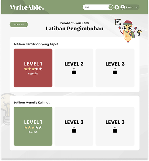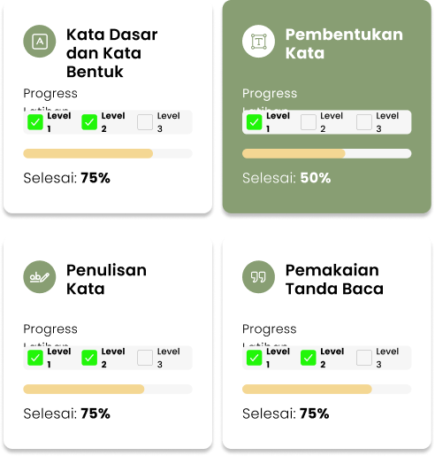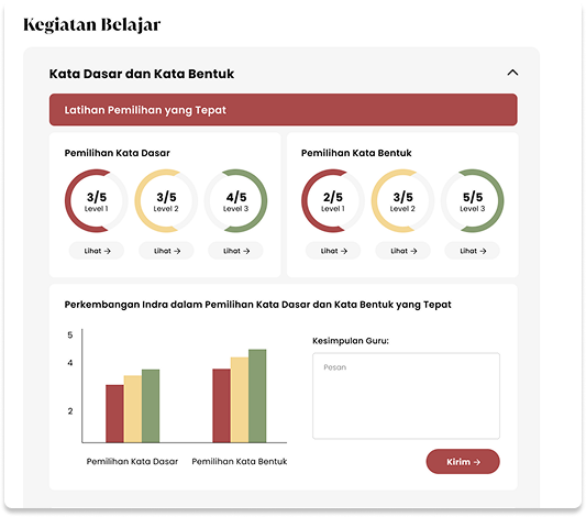 Murid diminta memilih kata yang sesuai dari beberapa pilihan yang disediakan. Tujuan dari soal ini adalah untuk melatih kemampuan murid dalam memilih kata yang tepat dan sesuai konteks.
