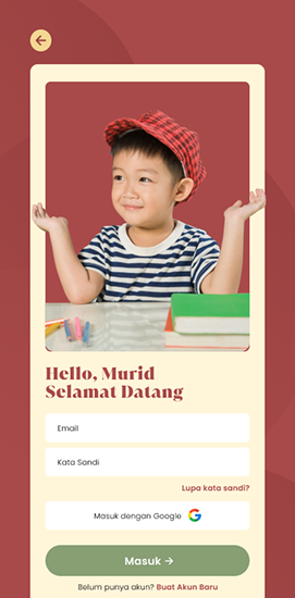 Murid dapat masuk/mendaftar dengan input akun email lain dan kata sandi