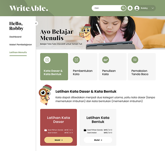 Murid diberikan sebuah konteks atau pertanyaan, lalu diminta menulis kalimat secara mandiri. Soal ini bertujuan untuk melatih murid menuangkan ide dalam bentuk kalimat yang benar dan sesuai struktur.